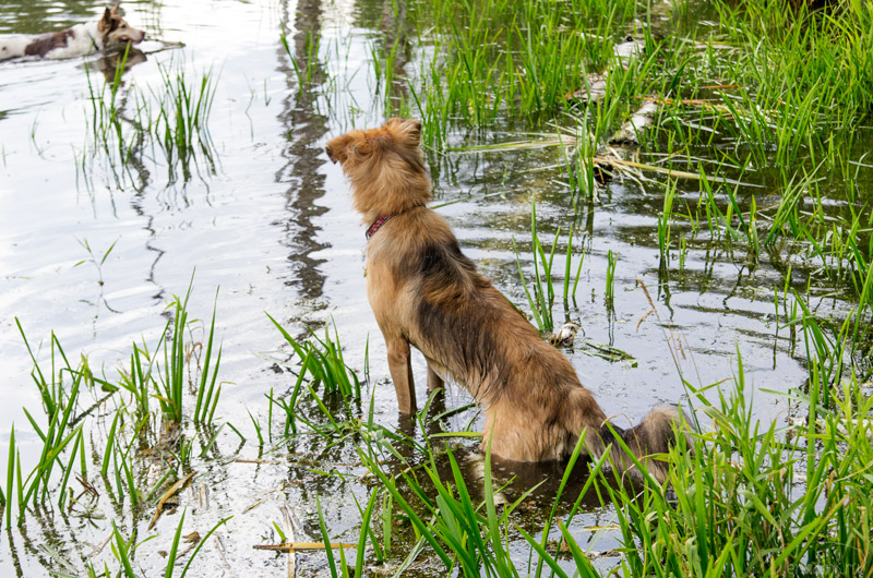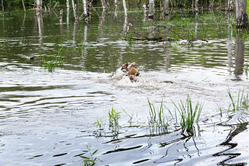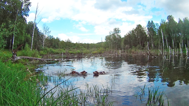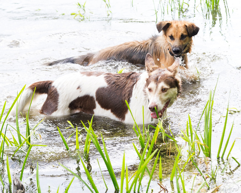 В прошлом году Волчок учил Дика плавать, а в этом Дик — Рыжика.