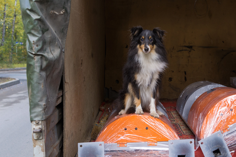 Мы с Ларисой и собаками остаёмся с догбоксом и бетонной ямой, а ребята едут устанавливать остальные боксы.