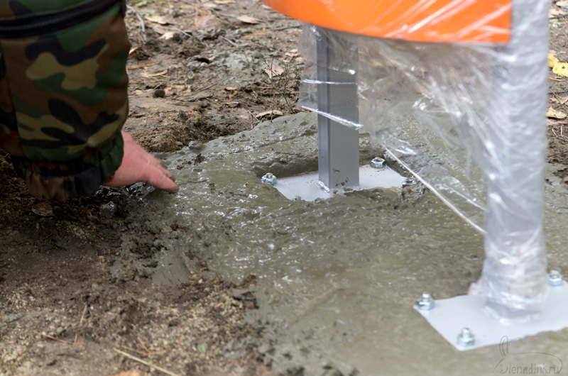 План действий такой: вырыть яму, насыпать подушку из щебня, залить бетоном, прикрутить к лапкам бокса шпильки, поставить бокс шпильками в бетон, подождать пока застынет бетон и проверить установку.