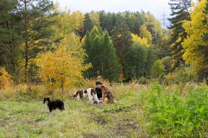 4. Уставшие, замёрзшие, грязные и голодные, со спящей шелтью на руках, мы стоим и смотрим как человек рисует осень.
