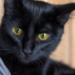 Чёрная Няшка из ИЦиГовских котят. Их пятеро было: Серебристая Крошка, Чёрная Няшка, Манула Мурочка, Паучишка Пушистик и их мама кошка Луна. Та ещё эпопея с их вылавливанием была. В конце октября 2012. Вот как раз Няшка поймалась. В ловушку, которую Кирилл специально для этого семейства сделал.